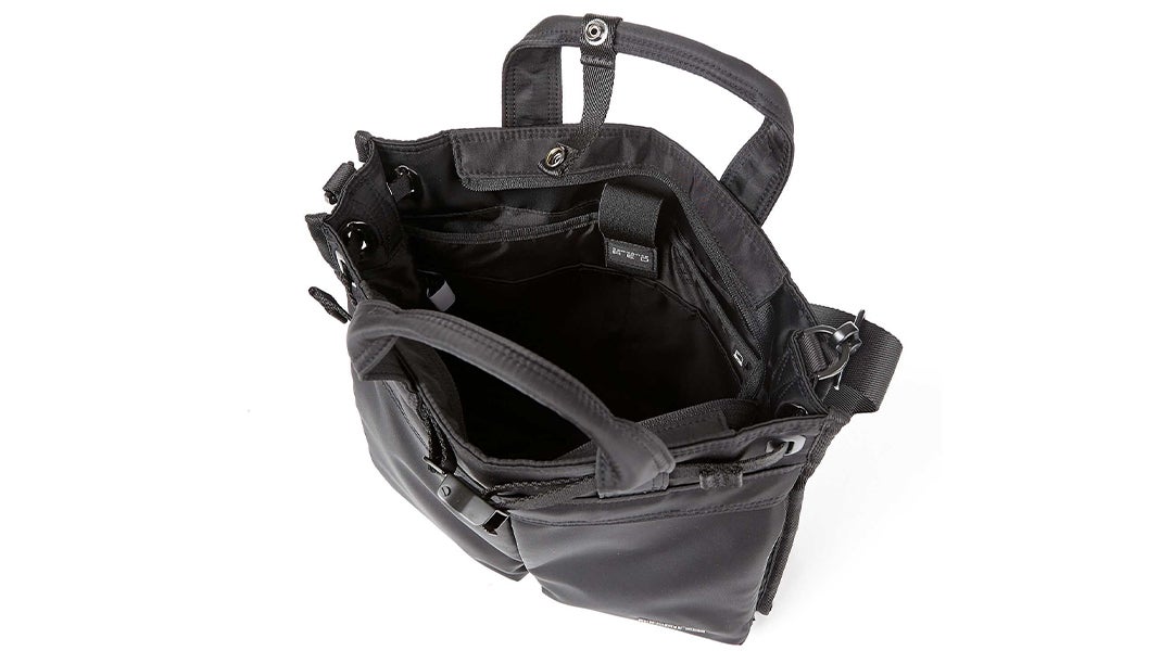 • Main interior: two slip pockets, mesh zip pocket, key clip