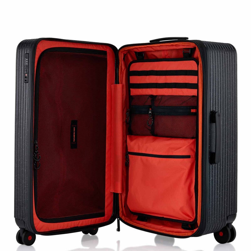 Get ready to explore the great outdoors with the rugged yet stylish TOIIS XP. This collection is built with sturdy polycarbonate, and has a rough textured finish to match your adventures. Adjustable straps on the exterior (except for the Spinner 55/20) further add a cool and distinctive utilitarian touch. Beyond its looks, TOIIS XP is designed for maximum functionality, security and mobility to keep you ready to face whatever comes your way. This is your ultimate companion for exploration in style. Choose from 4 color options – Black, Green, Ivory, and Blue – each inspired by the beauty of natural landscapes.